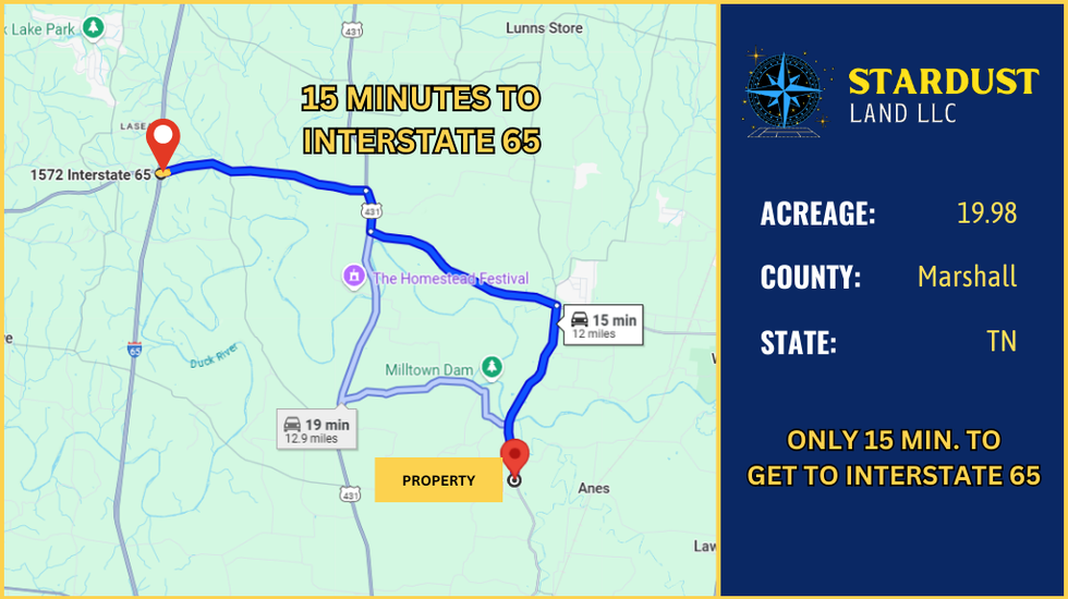 With easy access to Interstate 65, this property is just 11 minutes from Lewisburg and 28 minutes from Columbia, and a quick 52-minute drive to Nashville. Embrace the opportunity to create a homestead, farm, or recreational space in the heart of Tennessee’s countryside. This property’s wide entry and open expanse make it a versatile choice for anyone looking for space, convenience, and natural beauty.